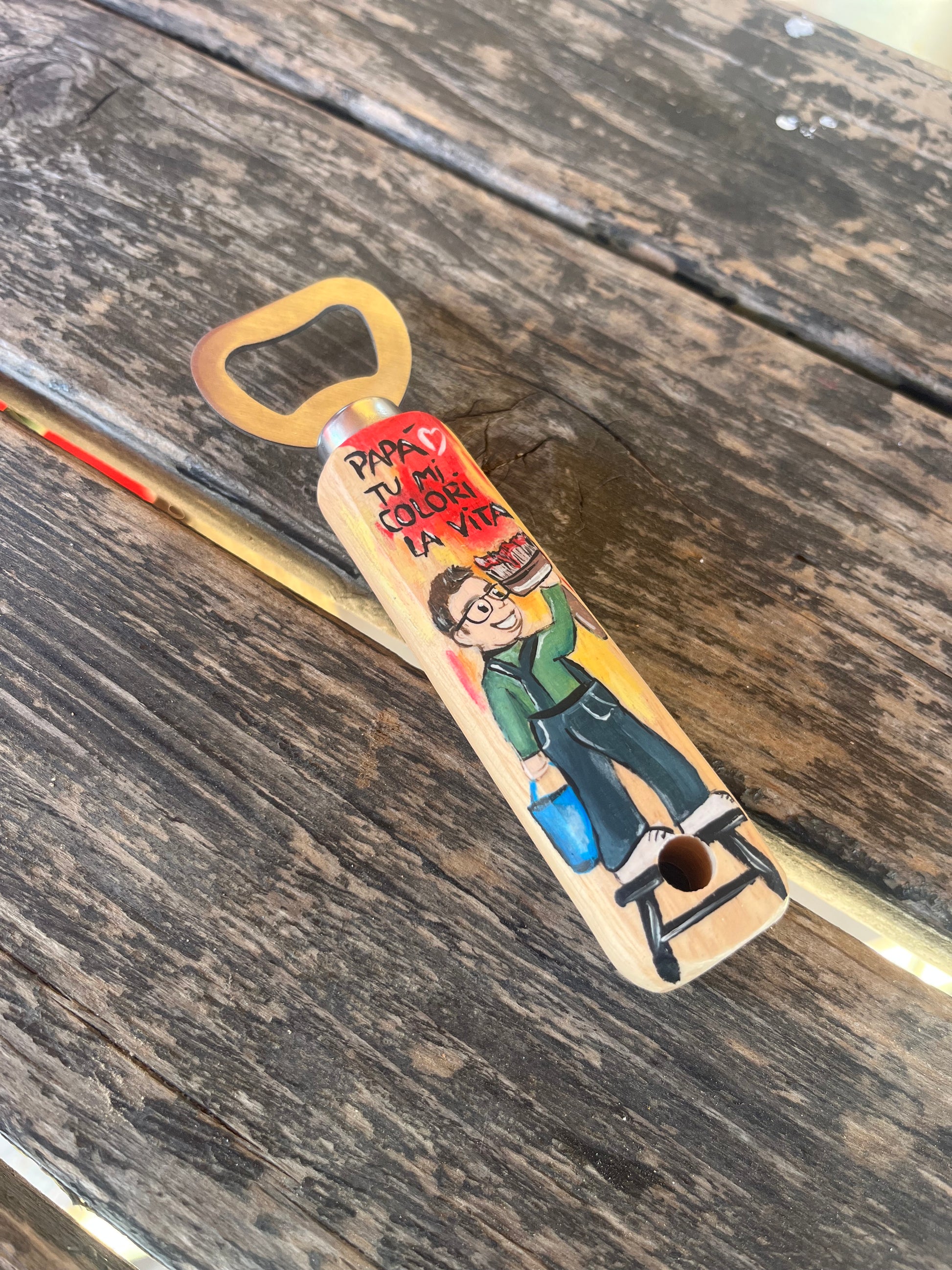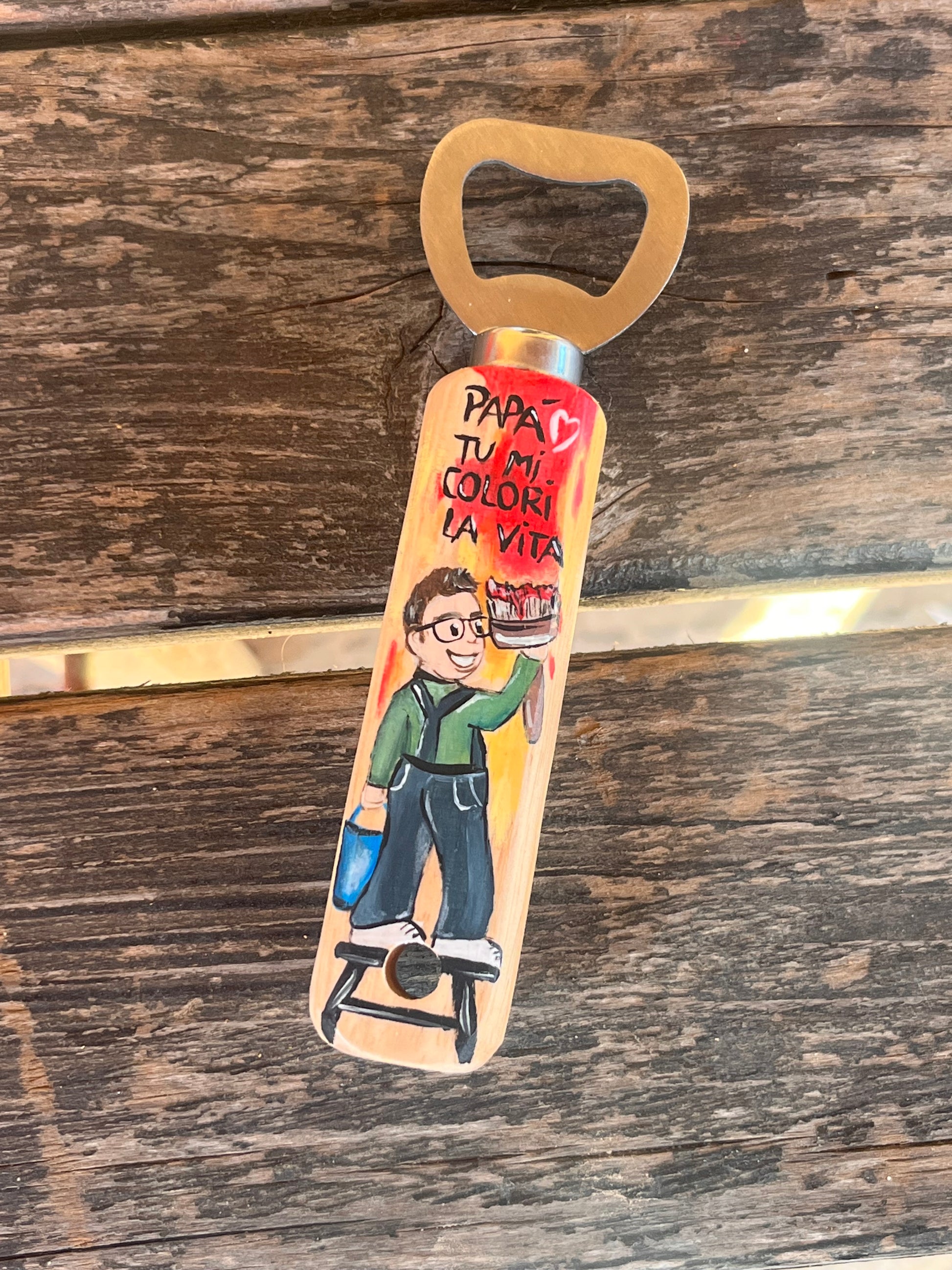 Un apribottiglie originale .Dipinto a mano per rendere unico il regalo per la festa del papà.