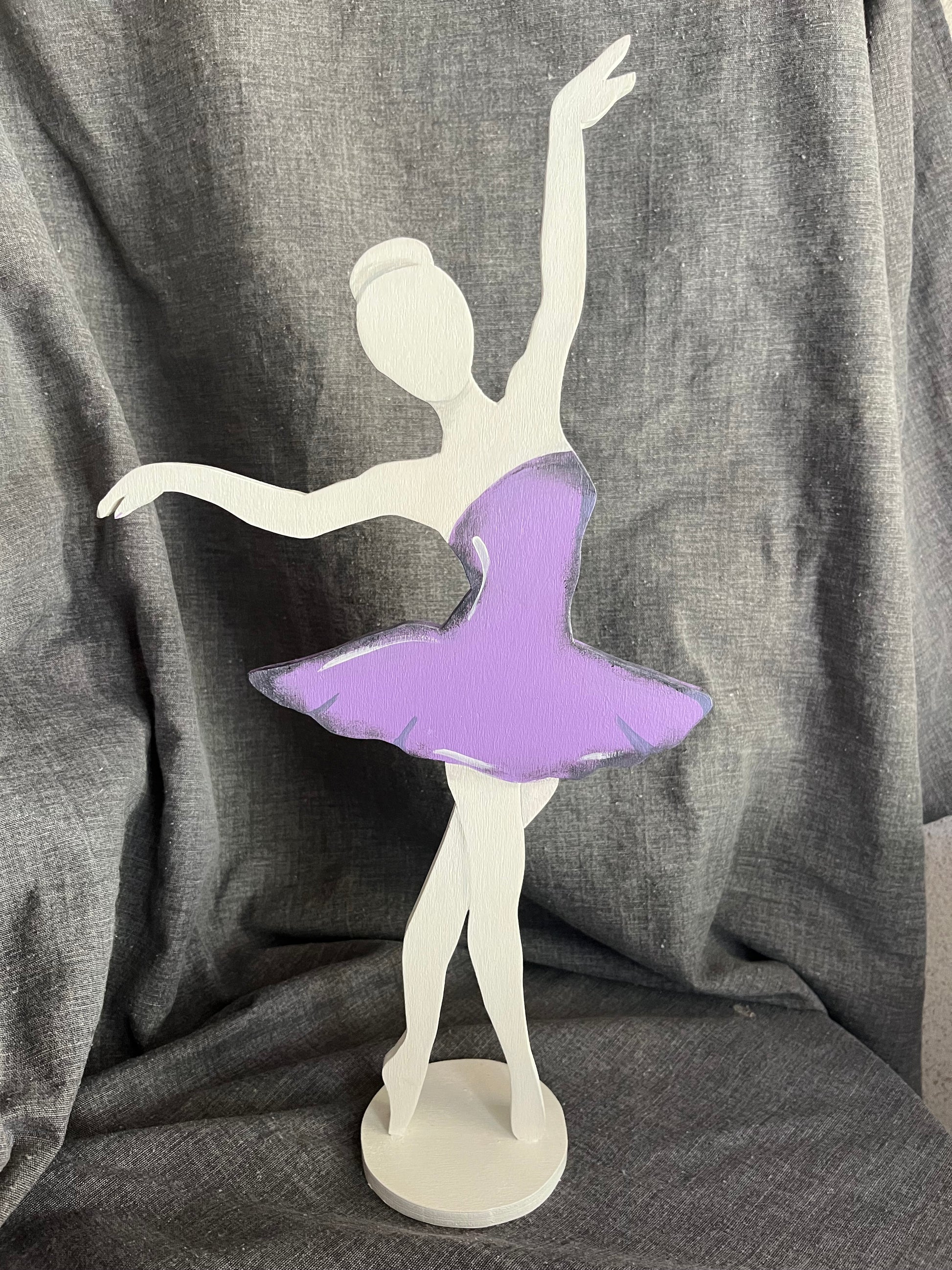 Una ballerina in legno utilizzata come centrotavola potrebbe essere un'elegante scultura artigianale. Immagina una figura delicata di una ballerina, scolpita con dettagli raffinati e realizzata in legno levigato. La ballerina potrebbe essere rappresentata mentre esegue un movimento di danza, come un arabesque o un plié, con le braccia sollevate e le gambe piegate in una posa armoniosa.