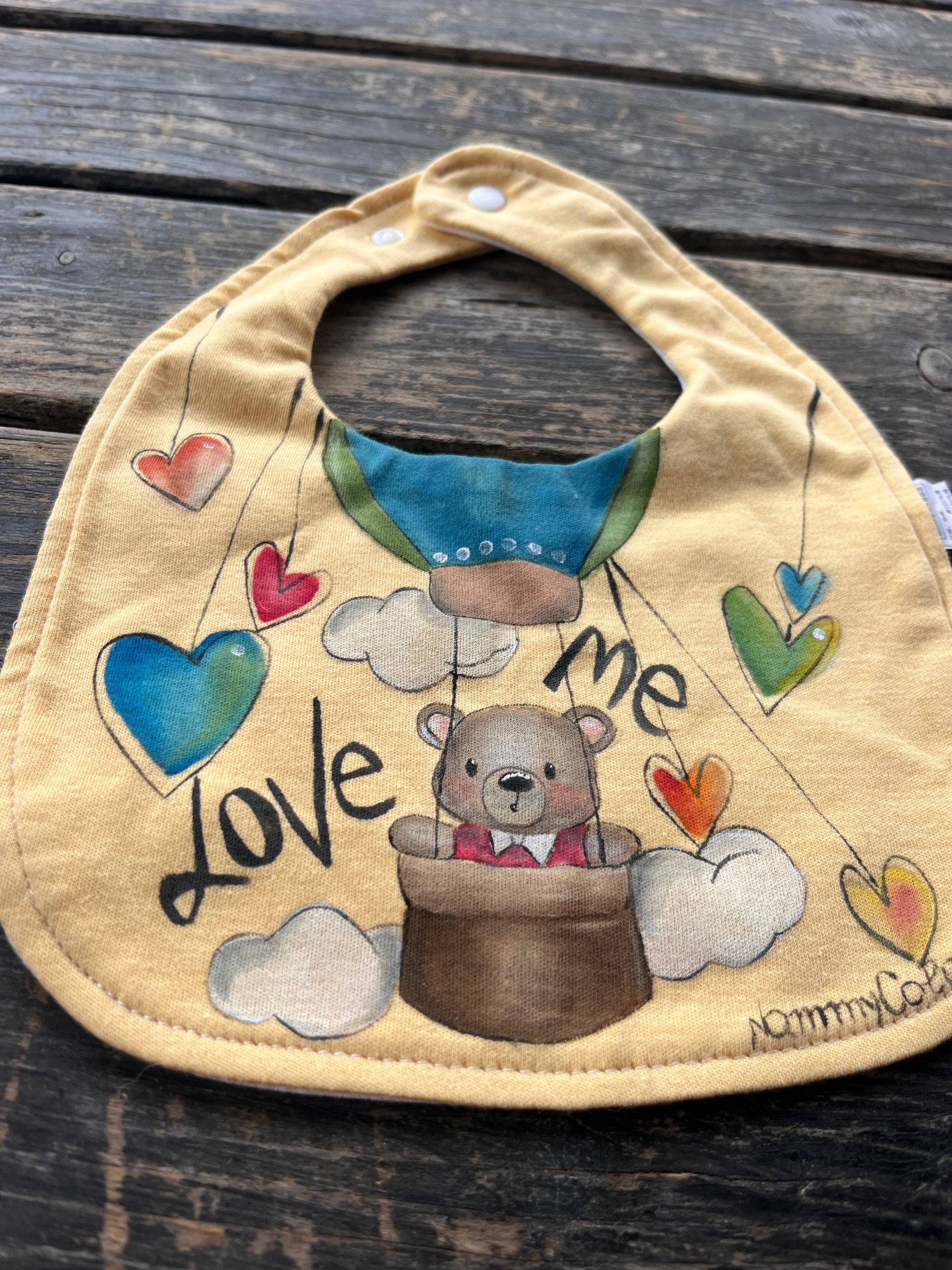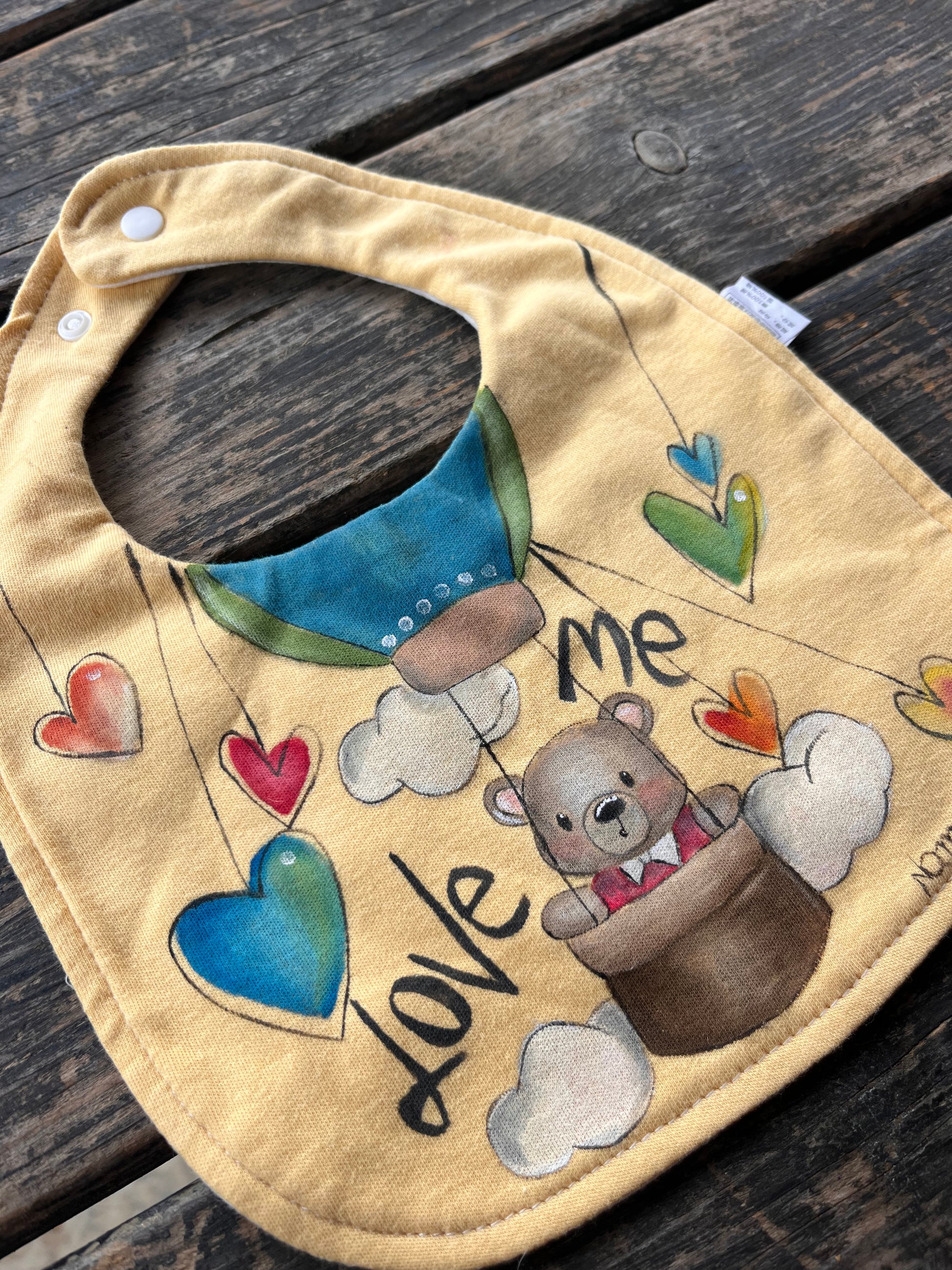 Un delicato bavaglino in cotone morbido, dipinto a mano con cura e passione. Decorata con un adorabile orsetto dipinto a mano, dai tratti dolci e rassicuranti, con colori tenui e naturali che donano un senso di calore e comfort. Il design dell'orsetto, con i suoi piccoli dettagli, rende ogni bavaglino unico. Inoltre, c'è la possibilità di personalizzarlo con il nome del bambino, aggiungendo un tocco speciale che lo rende ancora più personale e unico. Perfetto come regalo per una nascita, o per rendere ogni pasto un momento di tenerezza.