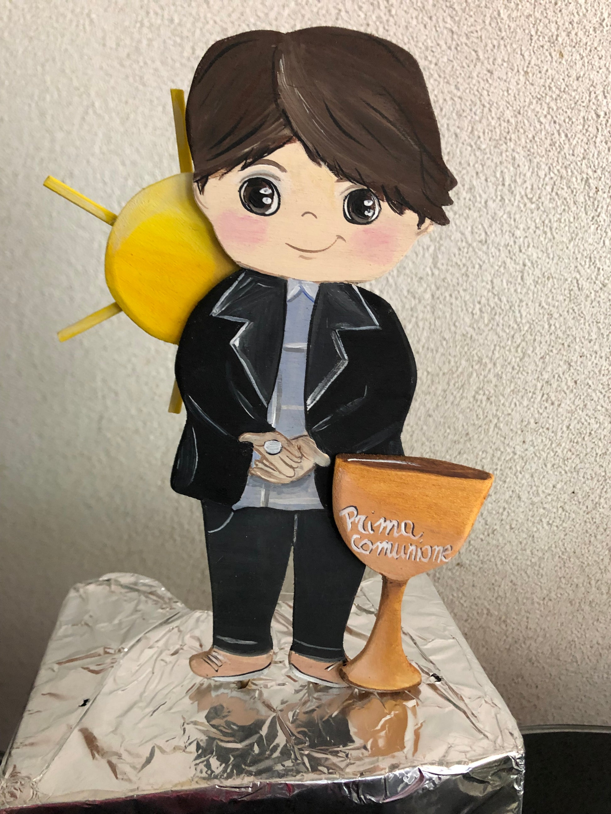 Un caketopper in legno dipinto a mano è una decorazione elegante e personalizzata, pensata per aggiungere un tocco speciale e unico a qualsiasi torta.