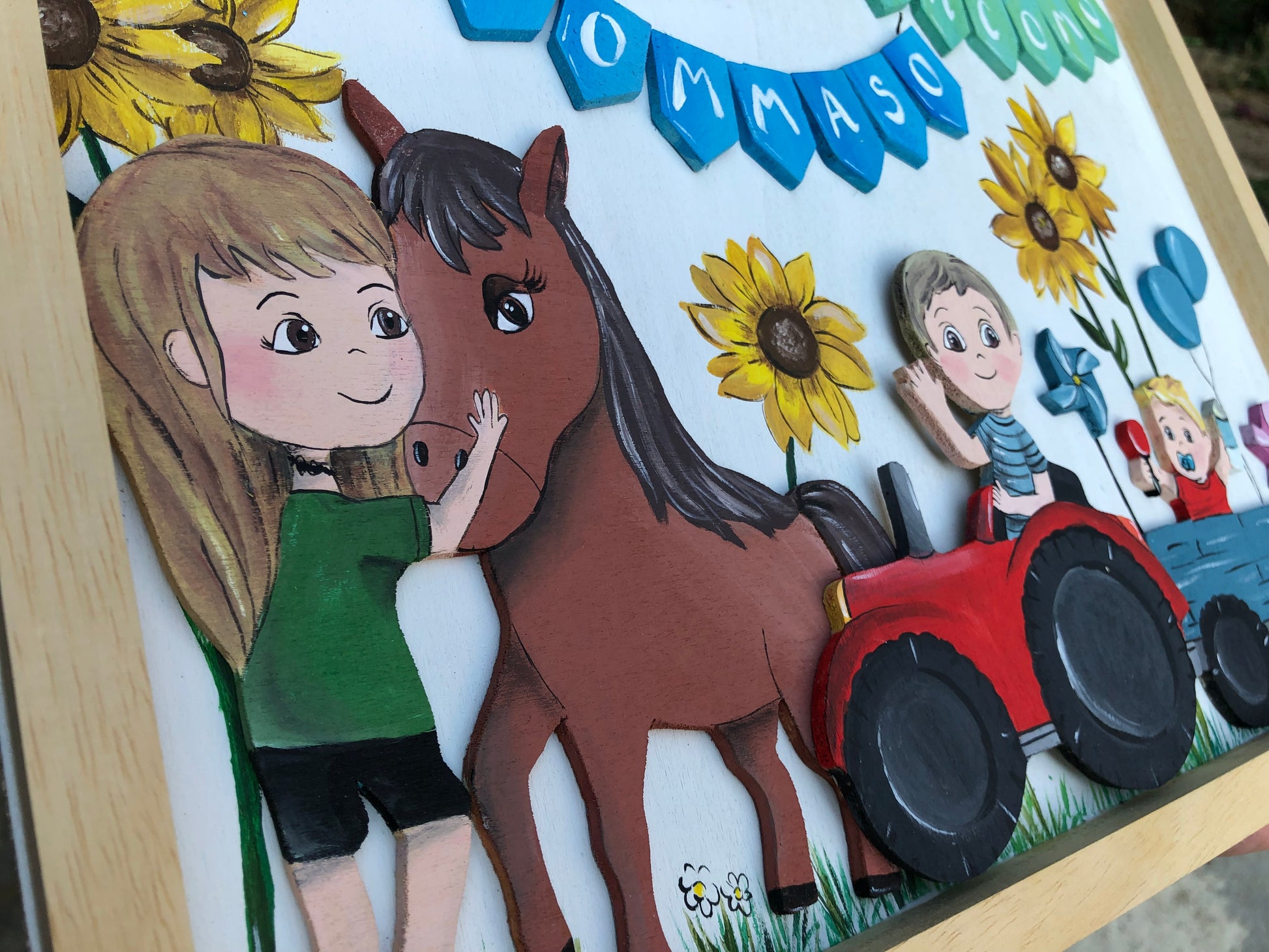 Ogni quadro è unico, poiché si può personalizzare con il ritratto della persona nella sua attività preferita, che si tratti di un artigiano al lavoro, un musicista che suona, un atleta che pratica il suo sport, o un hobbista impegnato nella sua passione. Le scene vengono arricchite da dettagli precisi e finiture artigianali, che ne esaltano il carattere.