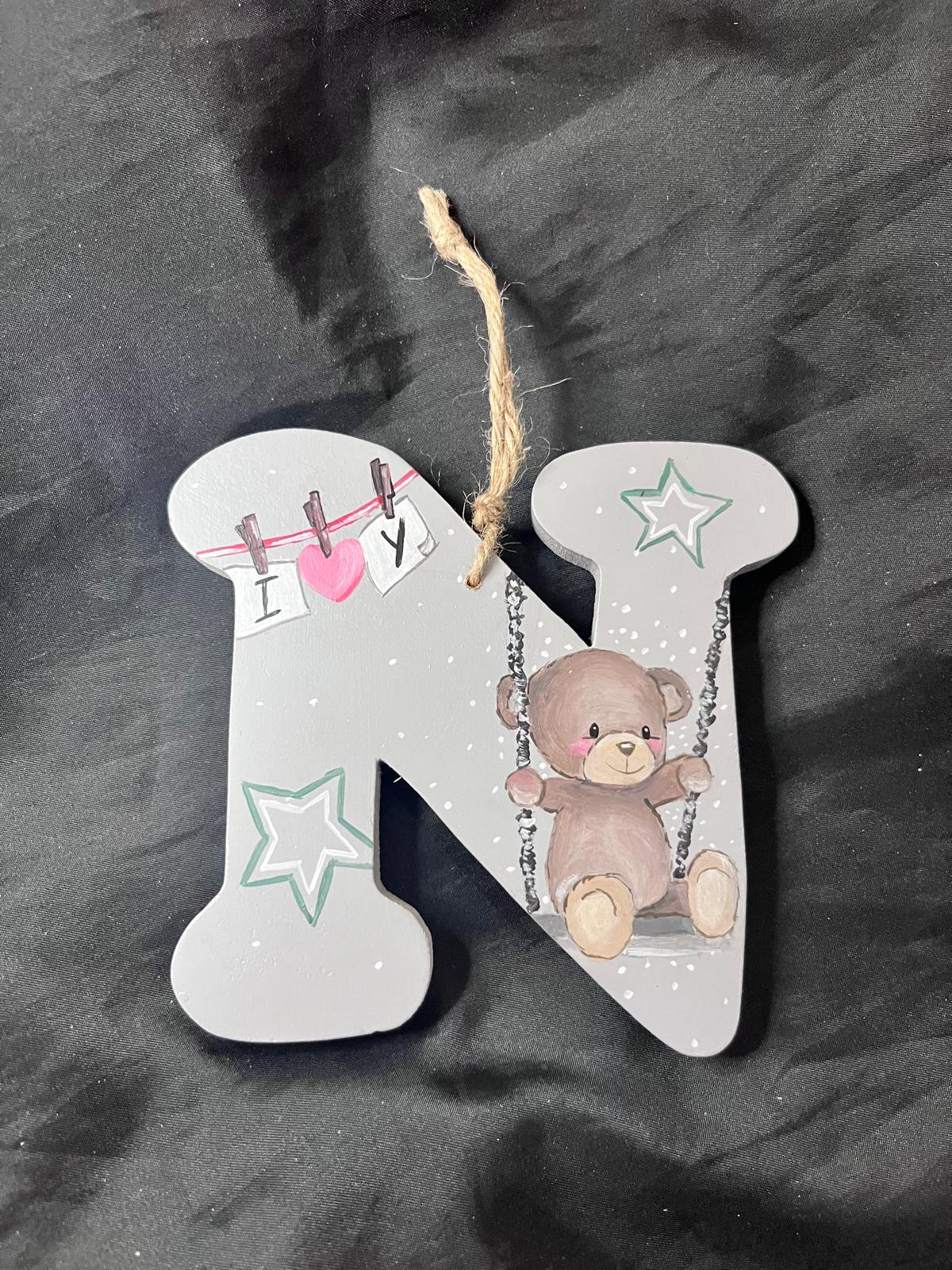 Questa lettera in legno dipinta a mano è un pezzo unico, realizzato con cura artigianale e passione. Dettagli unici che raccontano una storia. Ogni lettera è una creazione irripetibile. Perfetta per aggiungere un tocco originale e personalizzato a qualsiasi ambiente. La pittura a mano conferisce un aspetto artigianale e un'anima speciale, che rende ogni lettera un oggetto unico da esporre con orgoglio.