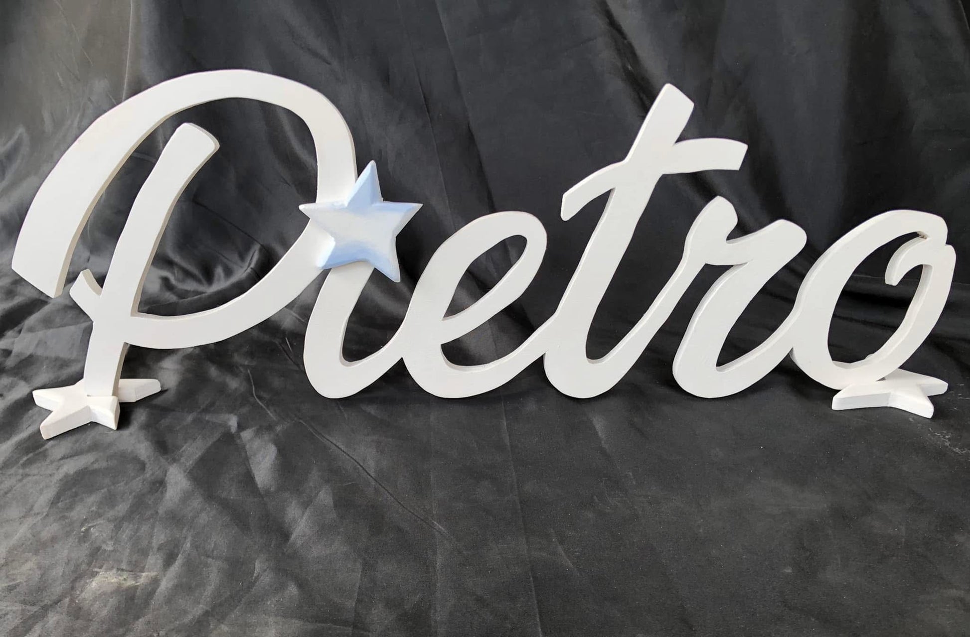 2. Nomi in legno con decorazione: Quando i nomi sono decorati, si aggiungono elementi come fiori, foglie, glitter, pizzi, o nastri, per creare un effetto più vistoso e giocoso. Questi dettagli possono essere scelti in base al tema della cerimonia, come ad esempio decorazioni floreali per un matrimonio primaverile, o finiture dorate e argentate per eventi più formali. Alcuni nomi possono essere arricchiti anche da pitture artistiche, elementi in rilievo o motivi personalizzati, conferendo un aspetto più elegante e unico.